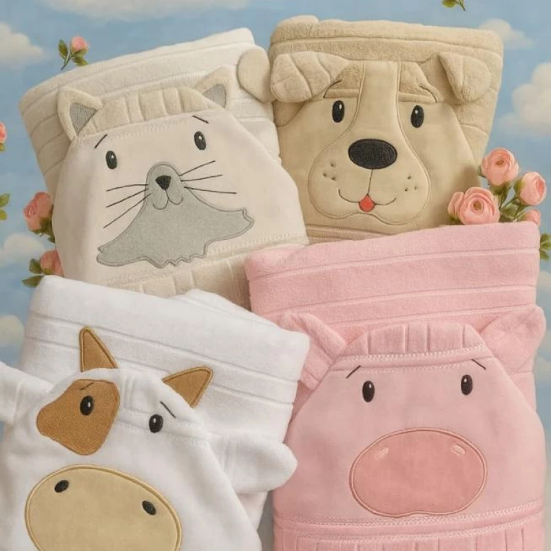 Toalha com capuz | Confeccionada com toalha da dohler aveluda medidas 075/1.40 temas safari entre outras serve criança RN a 5 anos Cores: brnca, azul, rosa baby , vermelha, marinho e rosa escuro |
